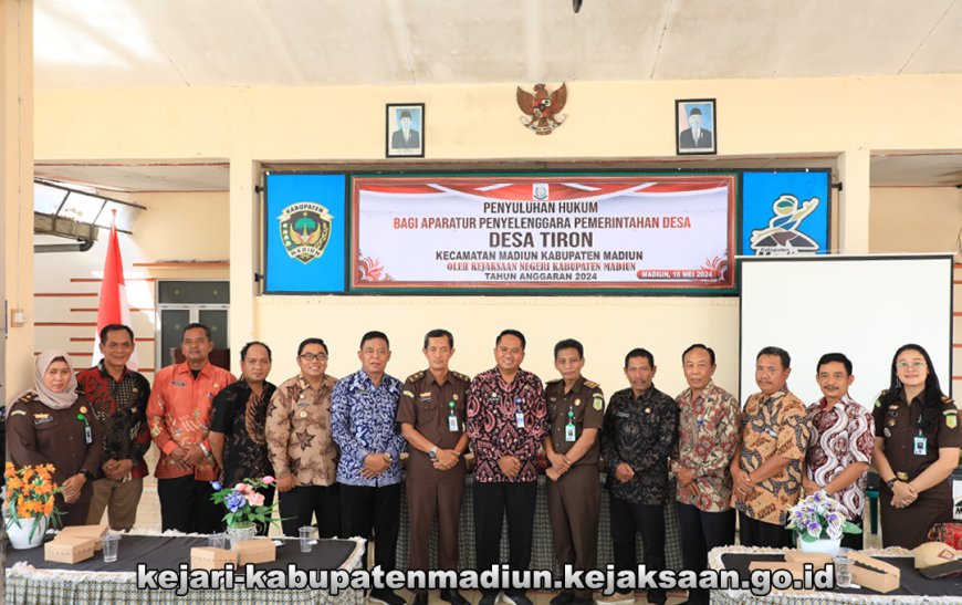 Pada Hari Kamis tanggal 16 Mei 2024, Bertempat di Kantor Desa Tiron Kecamatan Madiun Kabupaten Madiun, Kejaksaan Negeri Kabupaten Madiun melalui Bidang Intelijen melaksanakan Kegiatan Penerangan Hukum Program Jaksa Garda Desa (Jaga Desa) tahun 2024 bagi seluruh Desa di Wilayah Kecamatan Madiun Kabupaten Madiun.